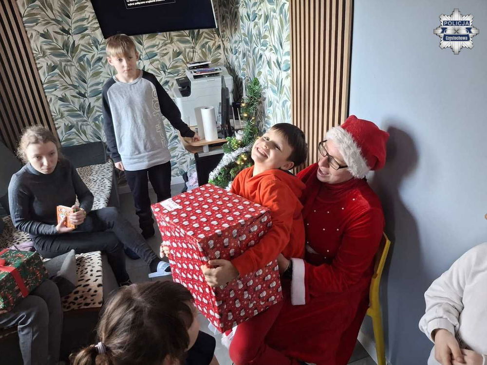 Funkcjonariusze Wydziału Prewencji Komendy Miejskiej Policji w Częstochowie wspólnie z wolontariuszami akcji Działamy Pomagamy odwiedzili dzieci z placówek opiekuńczo wychowawczych w Blachowni i Częstochowie, by przekazać im świąteczne prezenty zebrane podczas zbiórki.